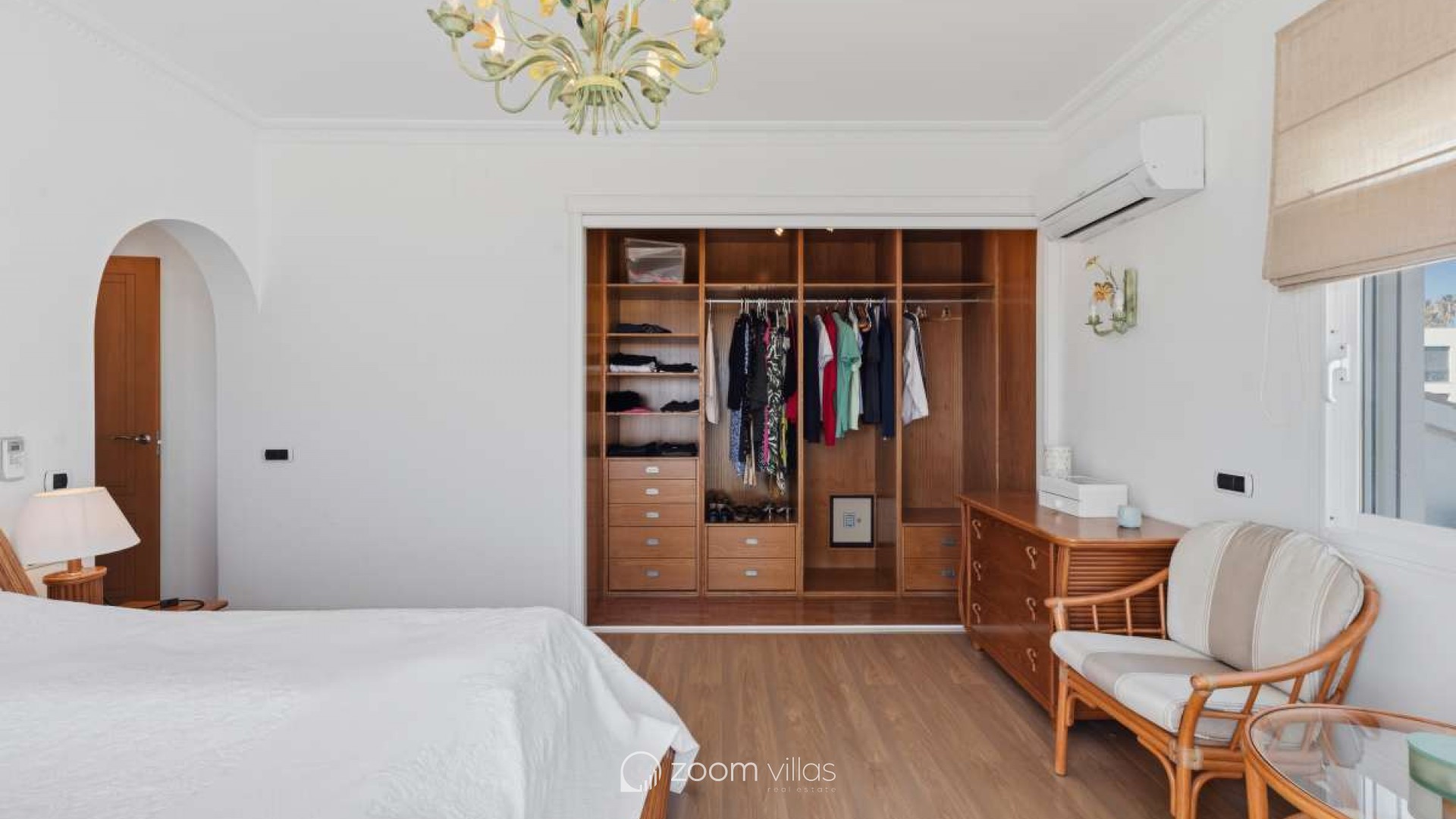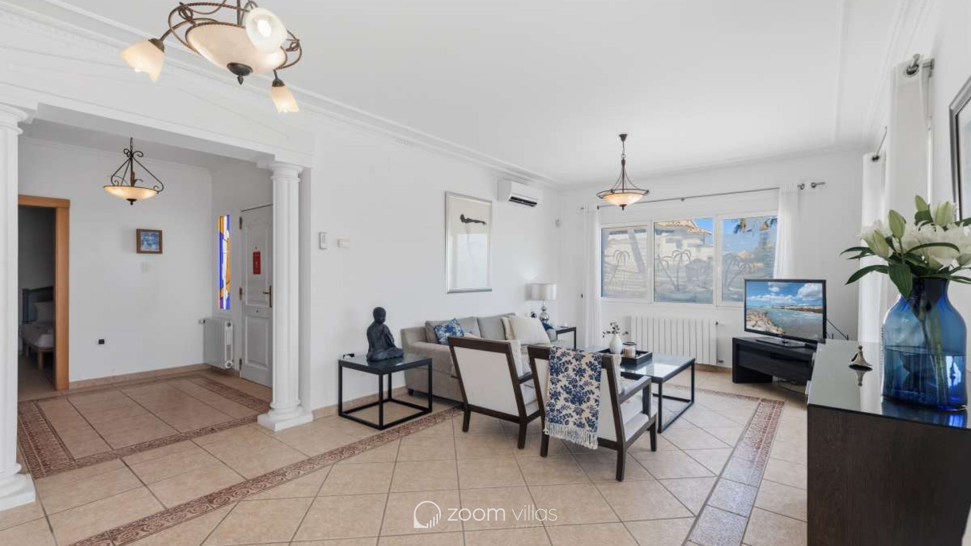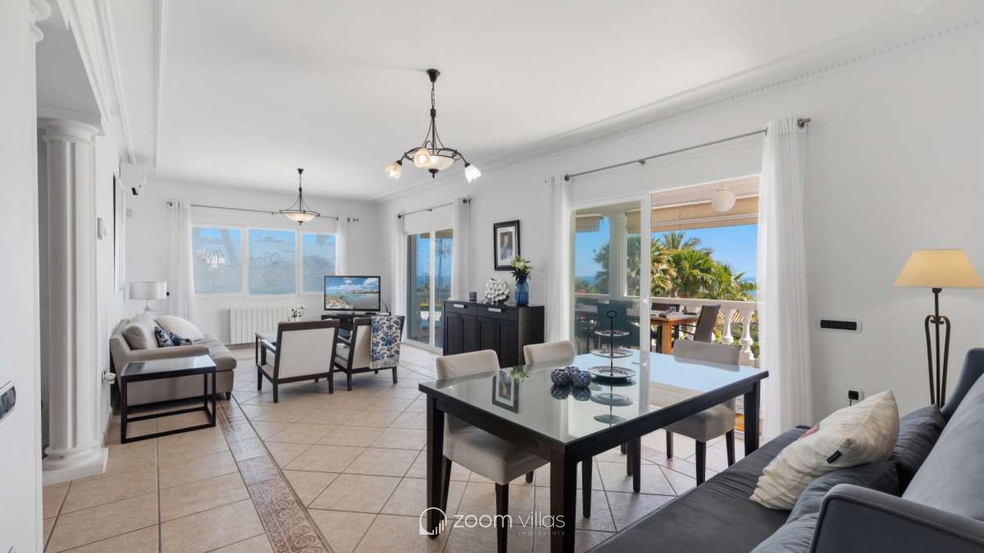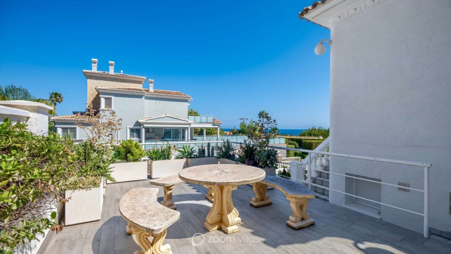 Located in a peaceful and elevated residential area of Calpe, this charming villa offers beautiful open views of the sea, the iconic Peñón de Ifach, and the town. The area is known for its tranquility and privacy, while still being just a short drive from beaches, supermarkets, restaurants, and the vibrant town center. This makes the property ideal both for permanent living and as a holiday home or rental investment.Built in 1999 on a plot of 937 m², the villa offers a total constructed area of 243 m² and is distributed over three levels, providing flexibility and excellent rental potential.The outdoor spaces are designed for enjoying the Mediterranean lifestyle, featuring a private chlorine swimming pool with sea views, several chill-out areas perfect for sunbathing and relaxing, a summer kitchen, and an outdoor shower.The main floor includes a bright living room with an open-plan kitchen and direct access to a terrace with stunning views of the sea, Calpe, and the Peñón de Ifach. From here, you can easily access the pool area and summer kitchen. This level also offers two bedrooms and a shared bathroom.The upper floor is dedicated to the master suite, featuring a private bathroom and a large terrace with panoramic views — an ideal space to enjoy sunrise and sunset over the Mediterranean.The lower level offers a separate living area with its own independent entrance, including three bedrooms, one bathroom, a storage room, and a chill-out area. This space can be used for guests or as a rental unit, while still being connected to the main house by internal stairs.The property is equipped with a gas heating system with radiators, ensuring comfort throughout the year. It also includes a private garage and additional parking space.This villa combines views, privacy, and versatility, making it a perfect choice for those looking for a comfortable home with strong rental potential in one of the most desirable areas of the Costa Blanca.